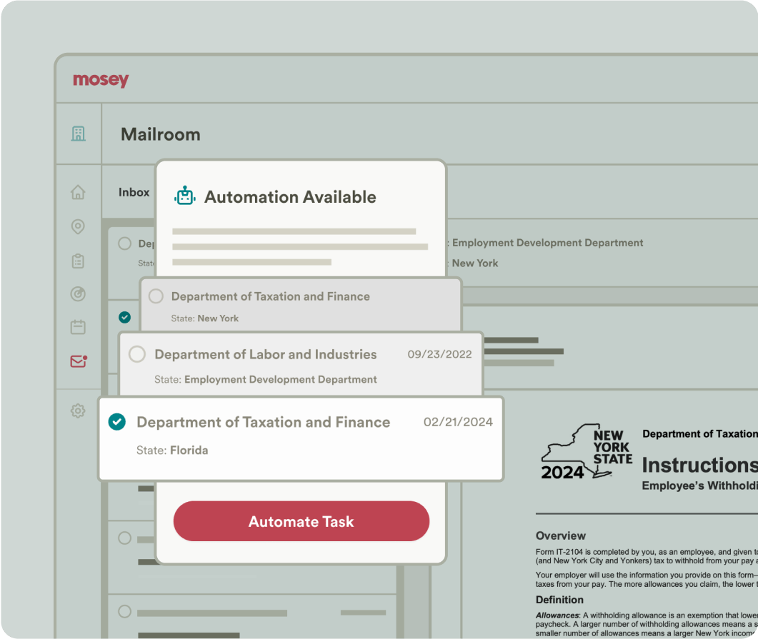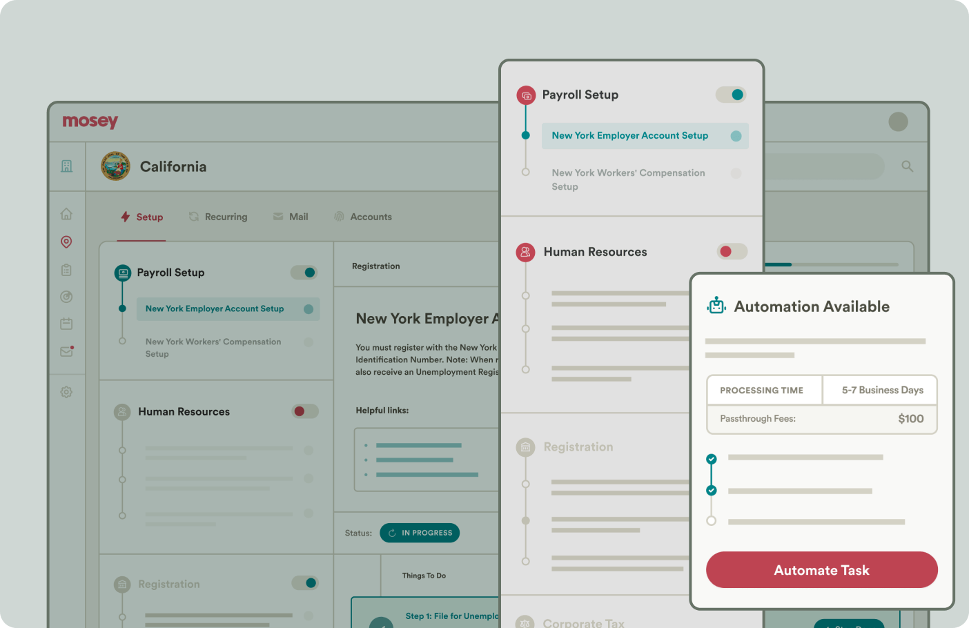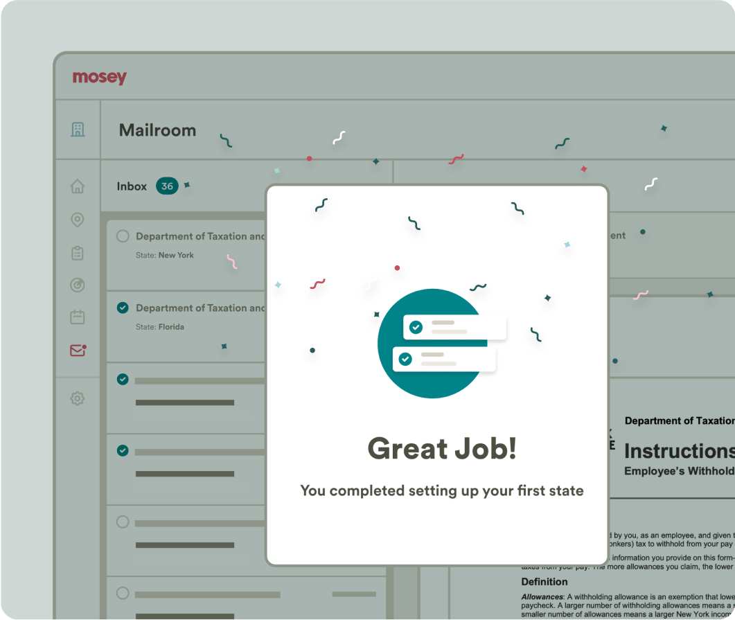 Mosey makes state compliance easy for your team no matter where your business operates. Offload the work of figuring out compliance and save thousands of dollars per year.