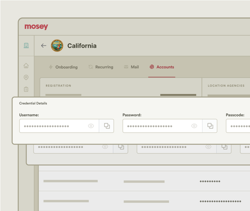 Mosey unifies the many parts state and local compliance into one platform that scales with your business.